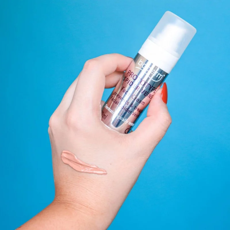 Prototype Spider Veins permite tratar y prevenir las arañas vasculares. Mejora el retorno venoso y la circulación sanguínea periférica. Protege el colágeno y la elastina del daño producido por los radicales libres. Además hidrata y tonifica la piel, mejorando su circulación y reestableciendo el pH cutáneo. Indicado en patologías que cursan con fragilidad capilar como la cuperosis, síntoma que también está asociada a la rosácea, al acné, fotoenvejecimiento.