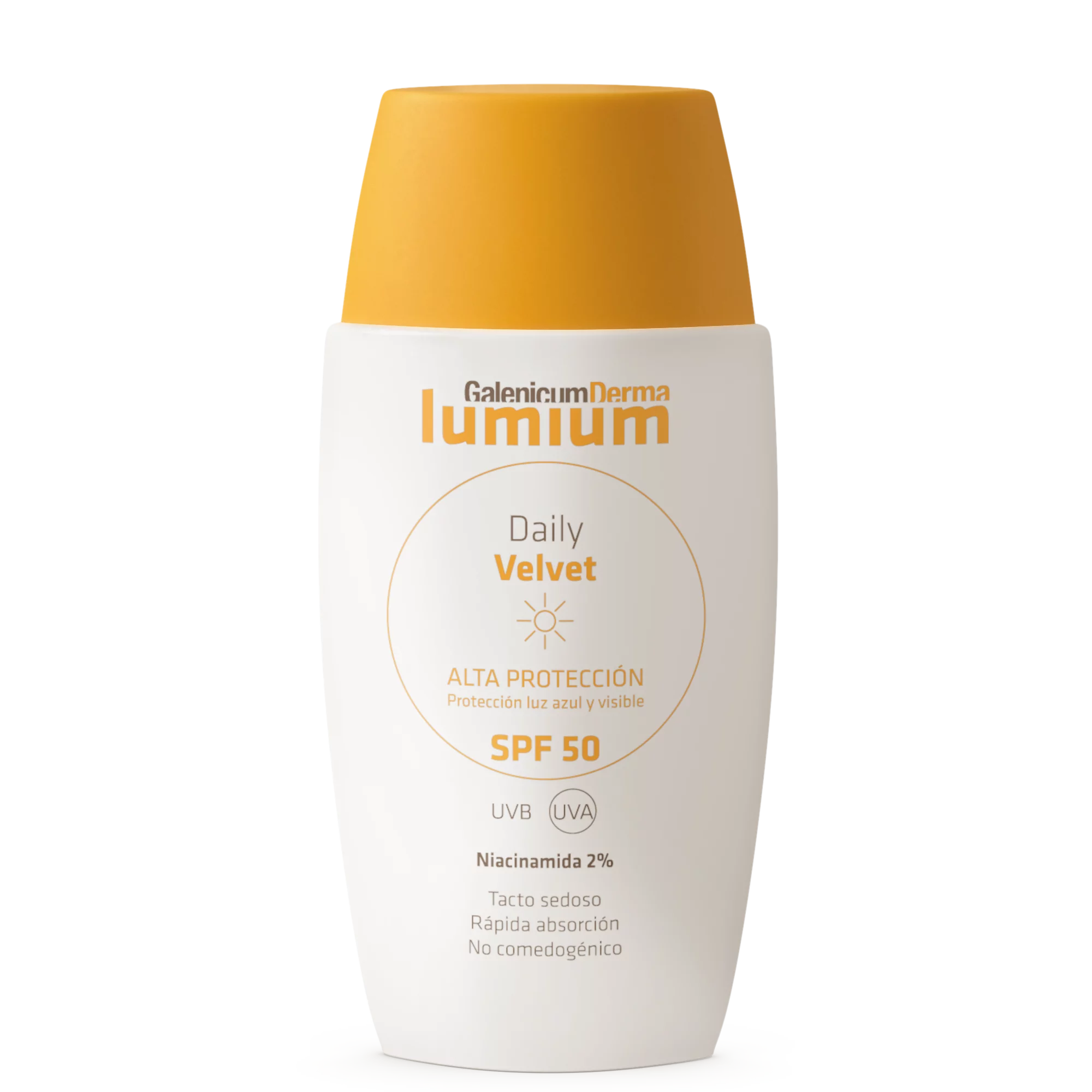 Lumium Daily Velvet SPF50 es un fotoprotector solar facial de uso diario con fórmula oil‑free y textura aterciopelada que se absorbe rápidamente sin dejar sensación grasa ni residuos. Diseñado para ofrecer protección de amplio espectro frente a los rayos UVB y UVA, luz visible, luz azul e infrarrojos, protege la piel de los daños solares y del fotoenvejecimiento, al mismo tiempo que mantiene una sensación ligera y confortable. Su acabado mate y sedoso lo hace ideal también como base para el maquillaje o uso diario independiente.